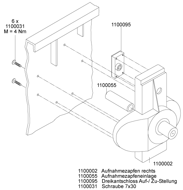 Aufnahmezapfen rechts MGB 1100 L Rundd.